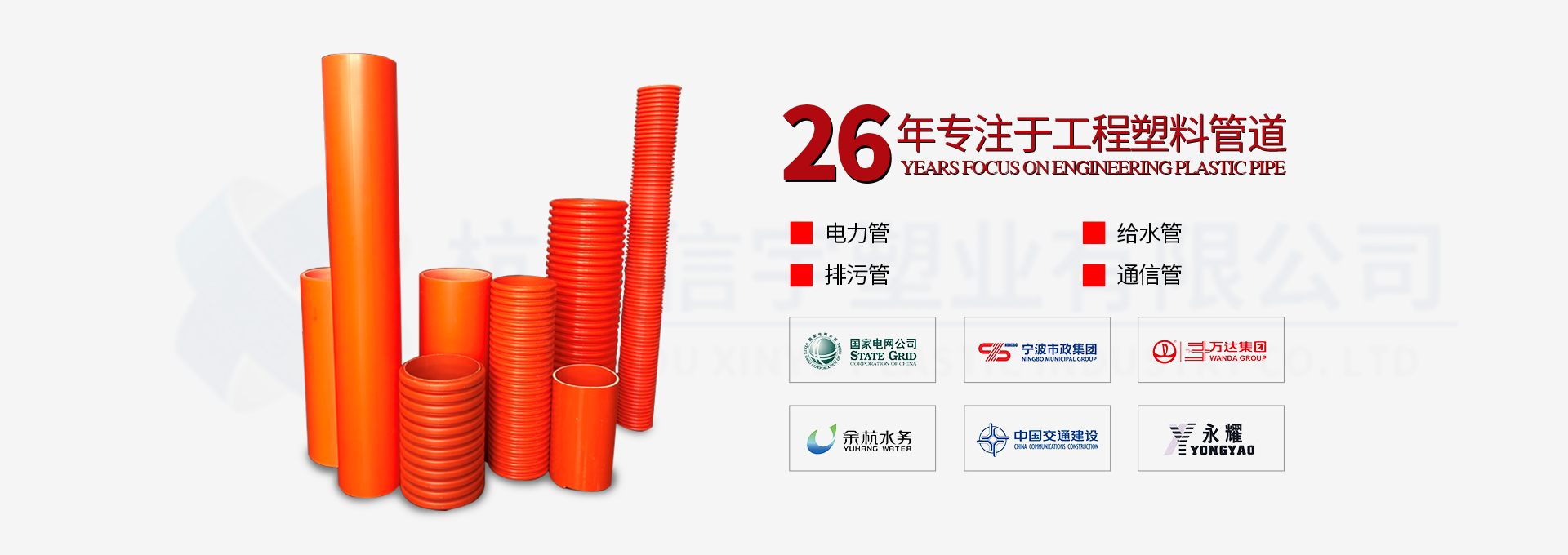 杭州信宇塑業有限公司創立于1993年,注冊資金10080萬元,是一家集塑料管道研發、制造、銷售為一體的國家高新技術企業。公司總部坐落于美麗的杭州西子湖畔,目前在杭州市黃湖工業園、安徽郎溪新發工業園建有兩大管道生產基地,總占地面積11萬平方米。此外,公司還擁有一家獨資子公司—安徽信宇管業科技有限公司。公司現有全自動塑料擠出機生產線52條,高精度模具500余套,年生產能力達10萬噸。公司專業生產“信宇中塑”牌HDPE給排水管、HDPE中空壁纏繞管、…
